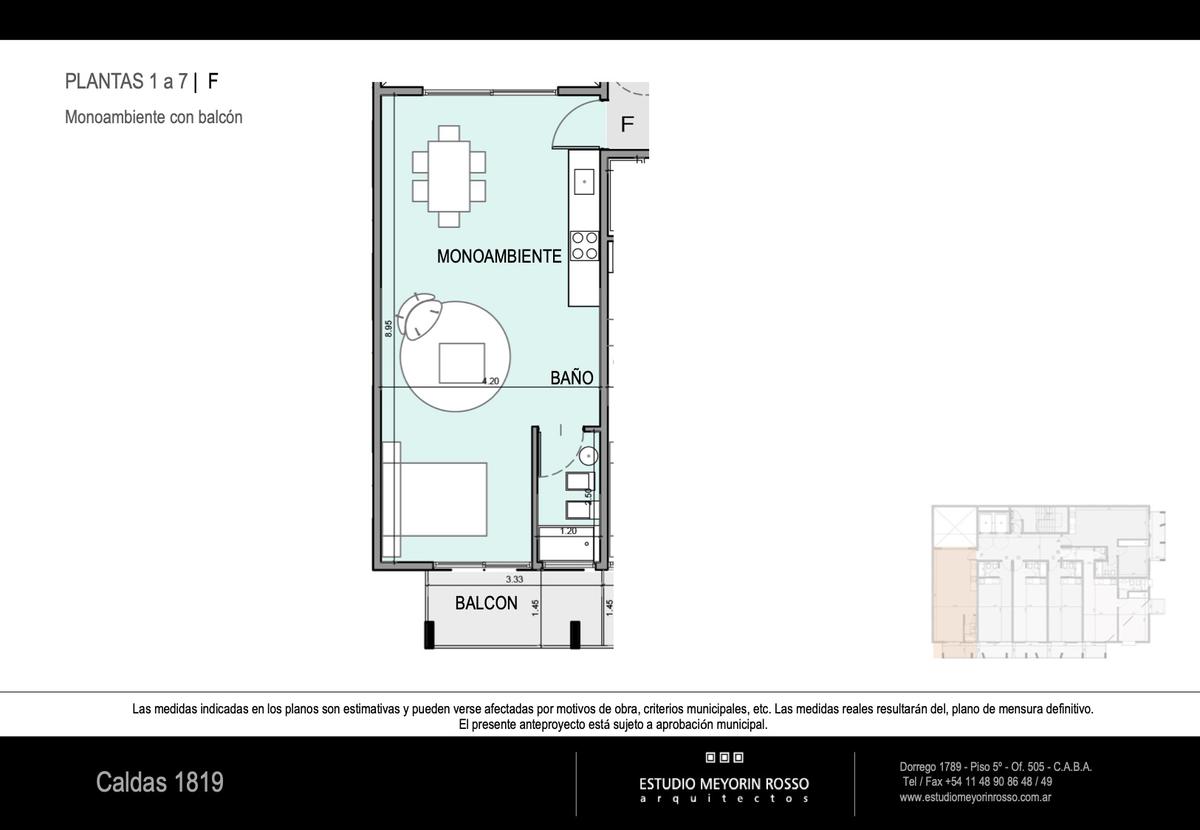 Departamento Monoambiente 43m2 ubicado en la calle Caldas, Villa Ortuzar.
