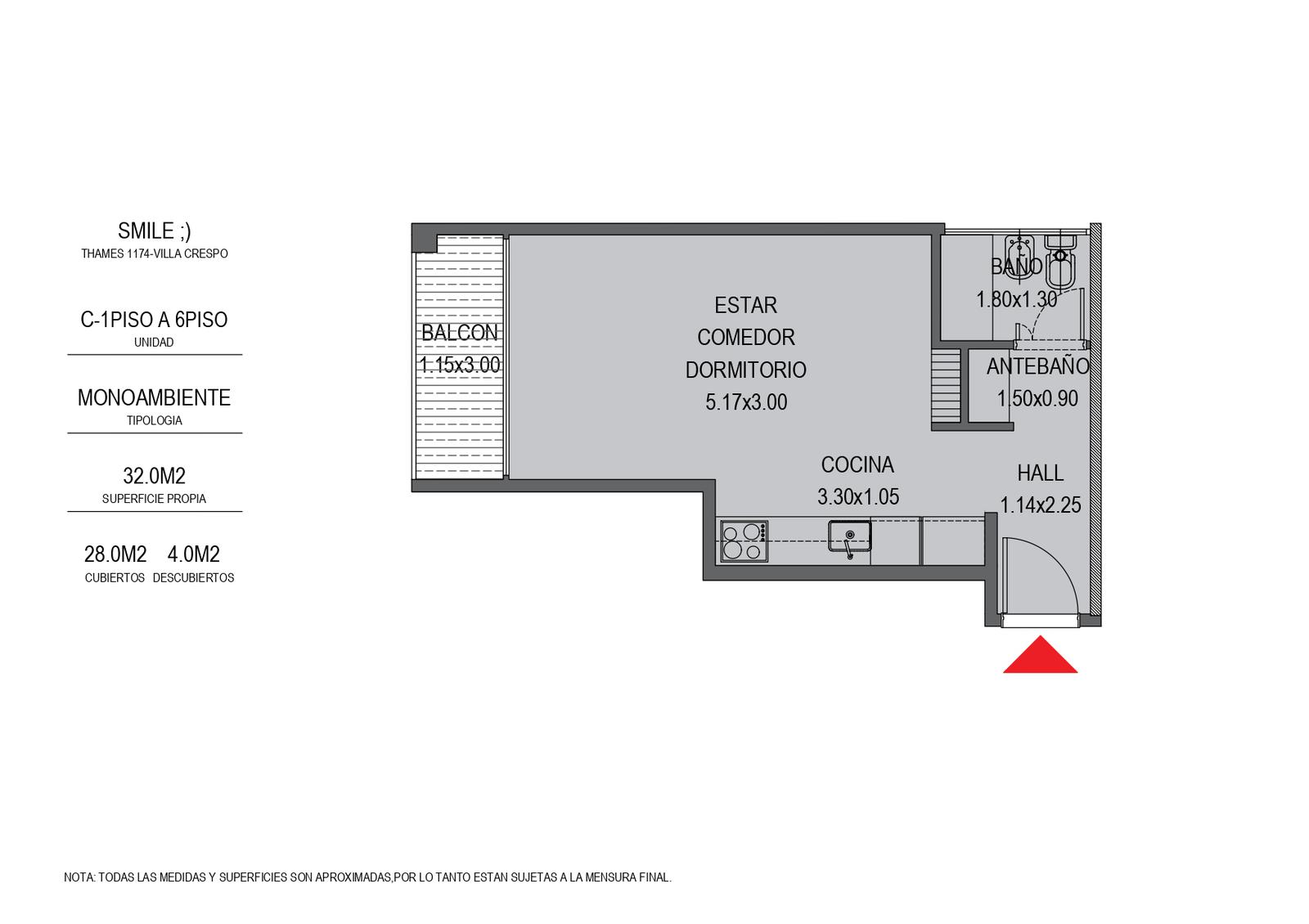 Ubicado en el barrio de Palermo al limite del barrio de villa crespo, este monoambiente en el sexto piso ofrece una excelente disposición hacia el contrafrente, brindando tranquilidad y privacidad. Con una superficie cubierta de 28m2 y un balcón de 4m2, este departamento es ideal para aquellos que buscan un espacio moderno y luminoso. La cocina cuenta con horno empotrado eléctrico, amoblamientos en melanina blanca y madera touch, mesada de granito gris mara y bacha de acero inoxidable. Además, cuenta con preinstalación para equipos split frío/calor y agua caliente central. El edificio, de bajo mantenimiento, ofrece losas y tabiques en hormigón armado a la vista. Con acceso a diversas líneas de colectivos, esta propiedad es una excelente oportunidad tanto para inversores como para quienes buscan un espacio confortable en una ubicación privilegiada. ¡Contactanos para más información!