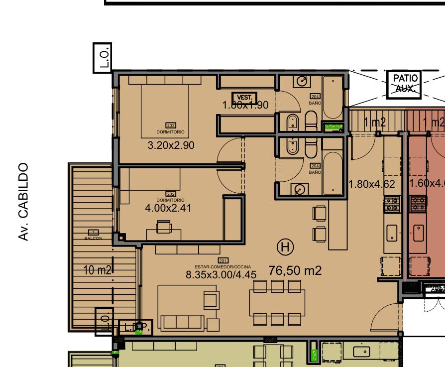 Esta unidad dispone de un balcón de 10 m2 con vistas a la Av. Cabildo y un patio de 1 m2, y una excelente distribución, cuenta con cocina totalmente equipadas, equipos de aire acondicionado de primeras marcas y gas natural.