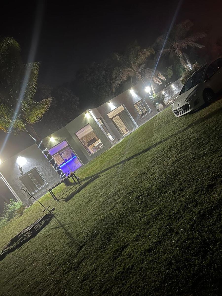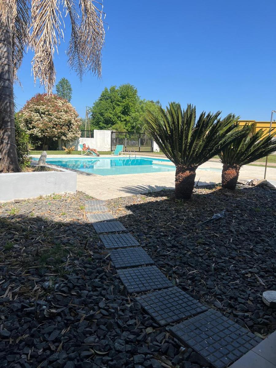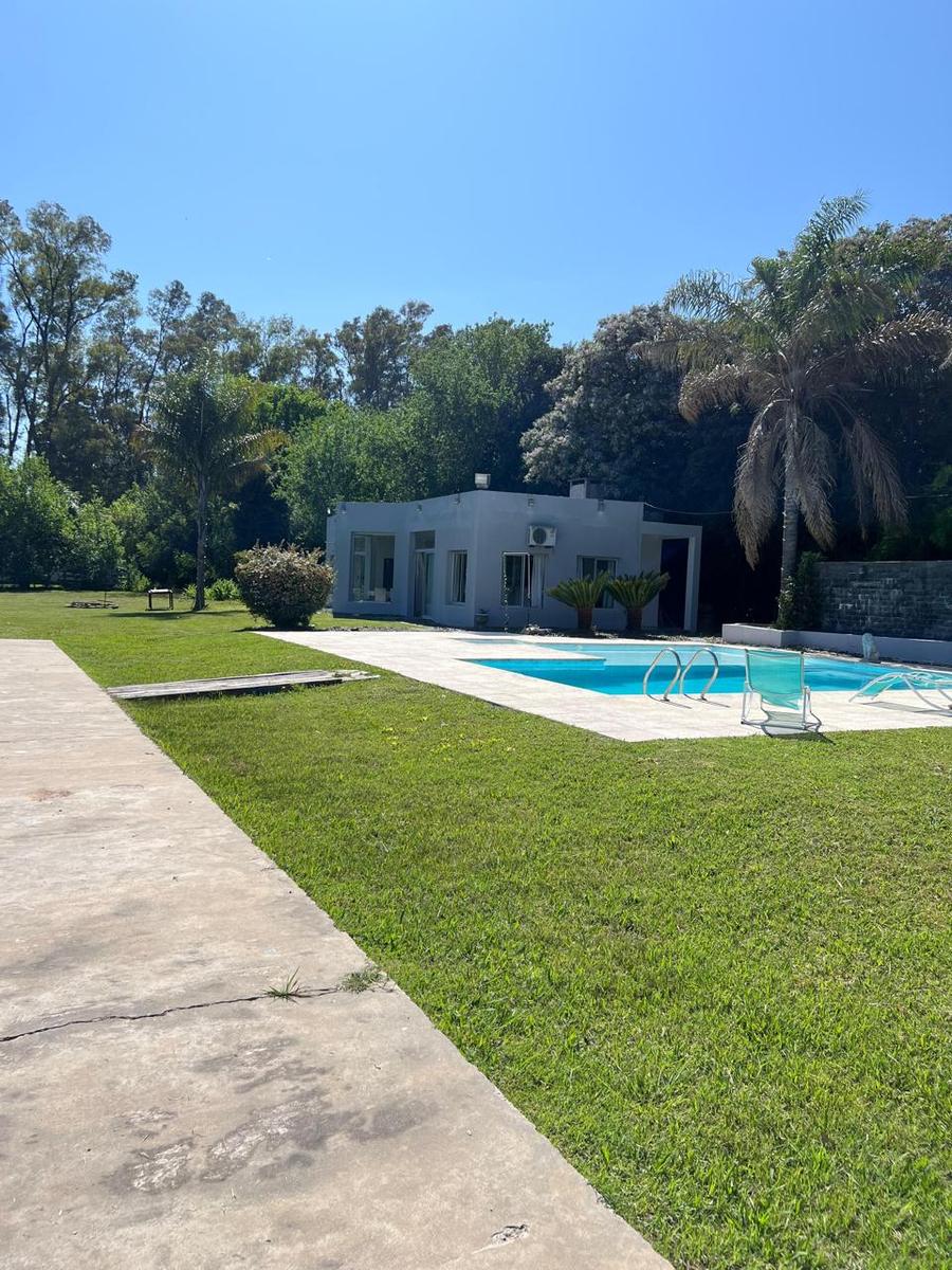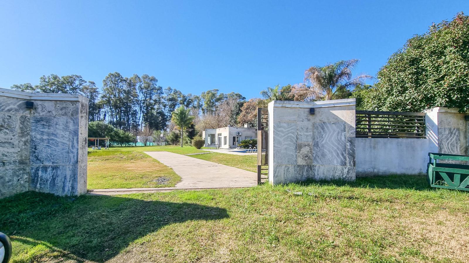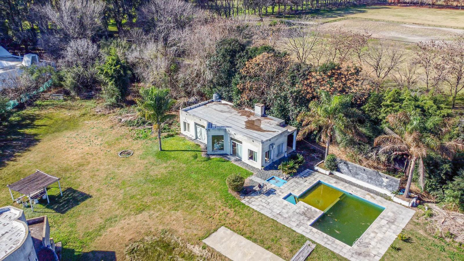 Esta emplazada sobre dos lotes de 4000m2 cada uno que hace un total de 8000m2En el lote se encuentra:Quincho con 2 parrillas muy amplias, 2 baños 1 dormitorio, todo vidriado y luminosoEstá autorizado para bajar helicópteros, linda con el Barrio “El Capricho”Tiene una caballeriza pequeña de 150m2La Chacra es ideal para construir cabañas, salón de fiestas, etc. Dispone de “casa para el casero”, con 2 dormitorios, cocina y baño.