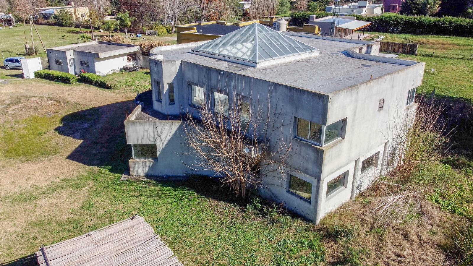 Esta parte es para terminar de construirLa Casa Principal, cuenta con 2 plantas .PB: 2 baños, salón de usos múltiples, cocina, comedor, habitación de servicio, lavadero.Planta Alta: 1 dormitorio en suite, 3 dormitorios más, 2 baños, una sala de estar y 3 balcones.La hermosa cúpula vidriada de la casa, estratégicamente colocada, optimiza el ingrese de la luz solar y el avistamiento del cielo nocturno.La cúpula es blindada y las aberturas son de acero inoxidable y tienen doble vidrio.Aunque la Casa Principal esta a medio terminar, cuenta con su estructura, el cableado eléctrico dentro de las paredes, toda la cañería y desagües. Los planos para la construcción están aprobados, así como los permisos de obra.