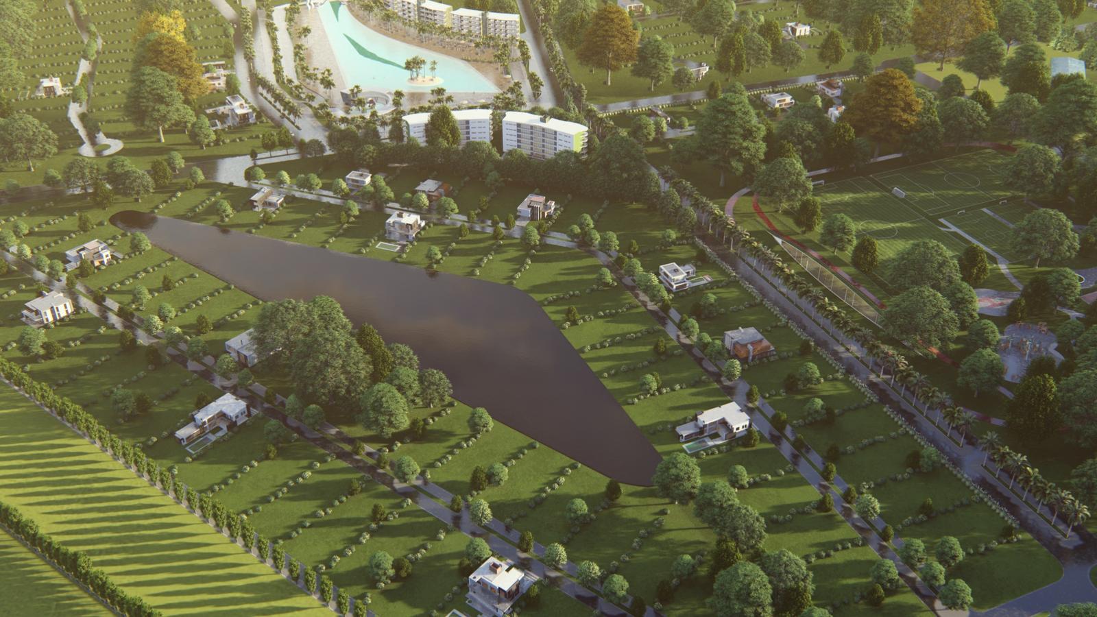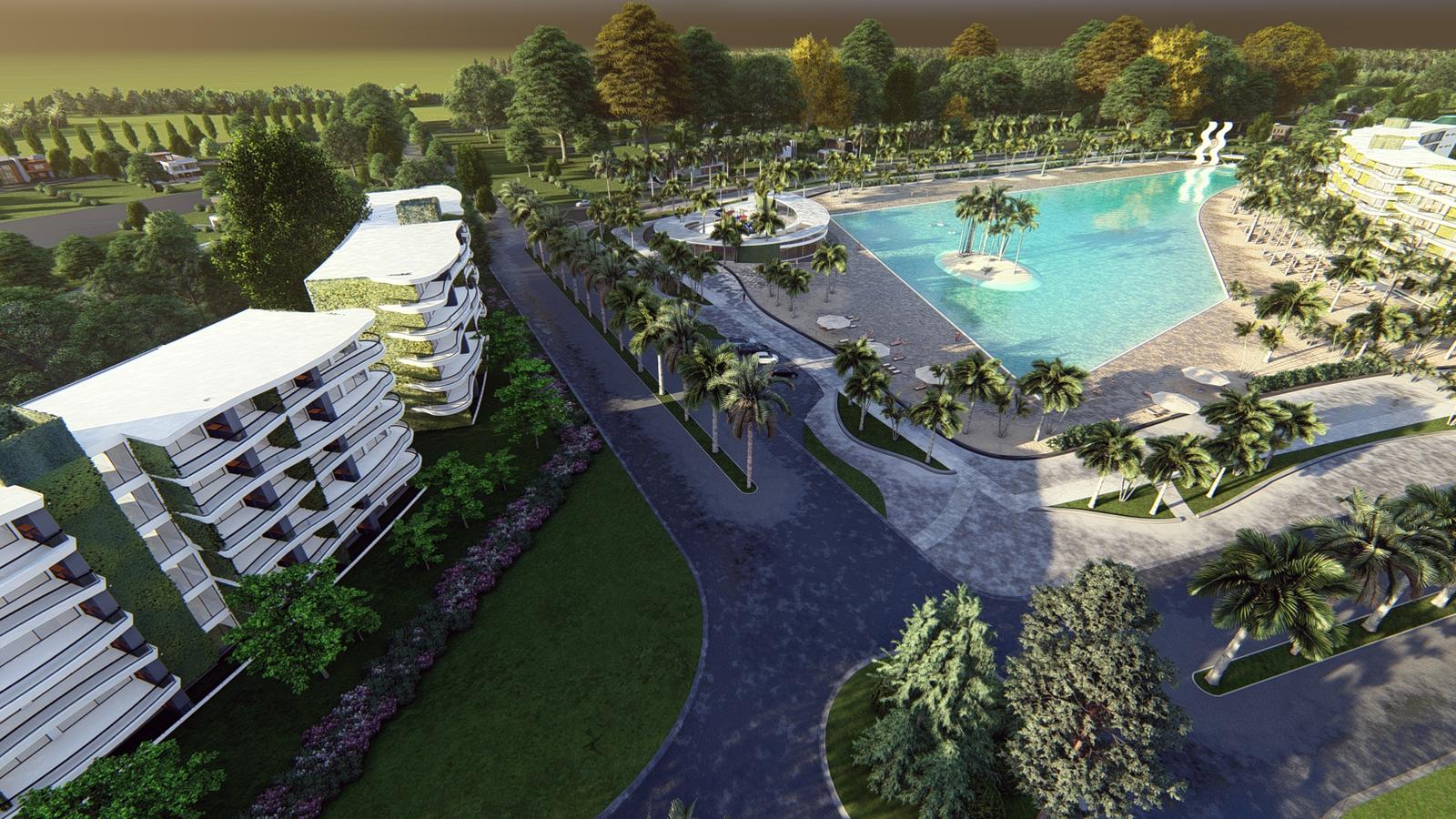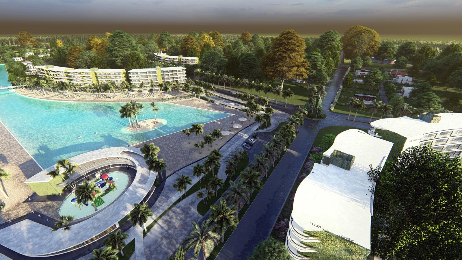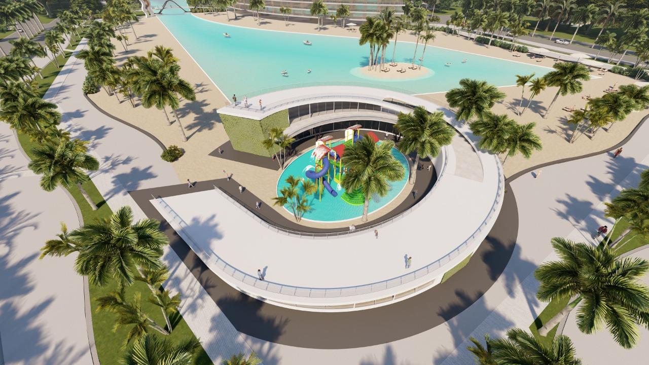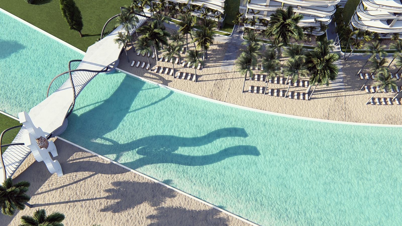Zona de LAKE BEACH, mega piscina de 3 hectáreas, que contará con playa propia, palmeras y sombrillas lo que hará que tengas LA PLAYA SIEMPRE CERCA. Donde se situa un Club House Lake Beach.