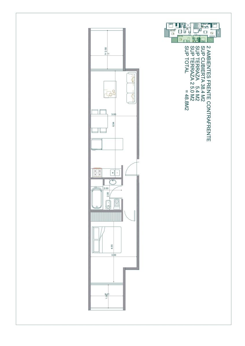 -Unidades de 2 y 3 ambientes con balcon al frente y/o contrafrente.