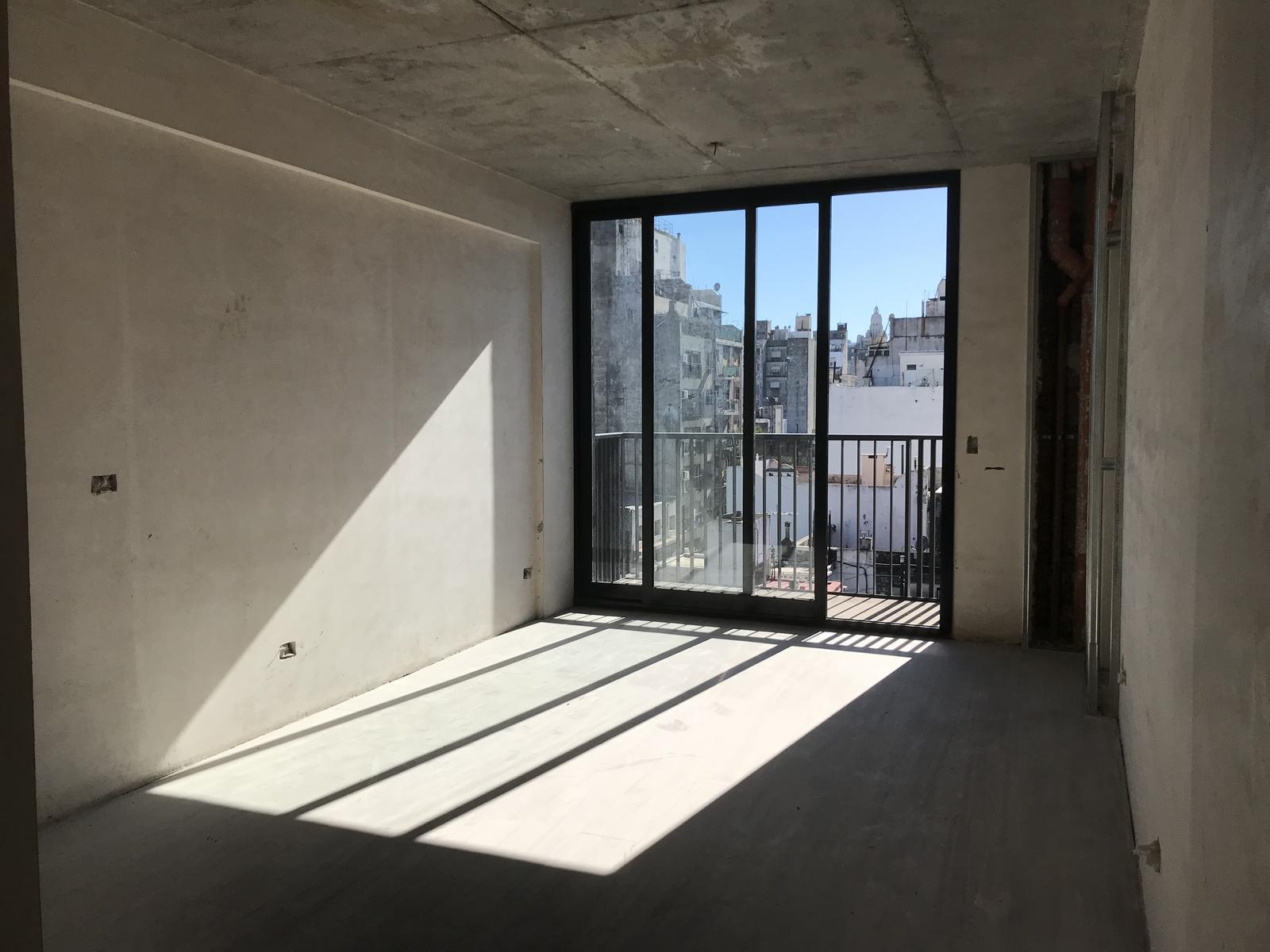 Sexto piso (preguntar por demás pisos), depto. A, monoambiente divisible de 30 m2., de los cuales 27 m2 son cubiertos y 3 m2 de balcón al frente. Un ambiente muy amplio. Living comedor integrado. Cocina completa con muebles de cocina enchapados en melanina – Alacenas combinadas en melamina aluminio y vidrio. Mesadas de cocina en granito. Horno eléctrico y anafe a gas. Aire acondicionado frio-calor por equipos tipo Split instalados. Pisos de porcelanato y micro, zócalos de madera pintados.