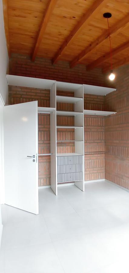 Placards con interiores en melamina blanca y madera touch, con detalles que optimizan el espacio.
