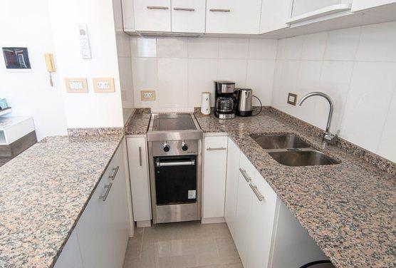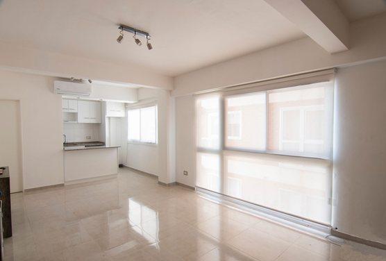 35 m² totales, muy luminoso, disposición lateral y bajo nivel de ruido. Baño y cocina a nuevo, aire acondicionado, cortina roller sunscreen.
