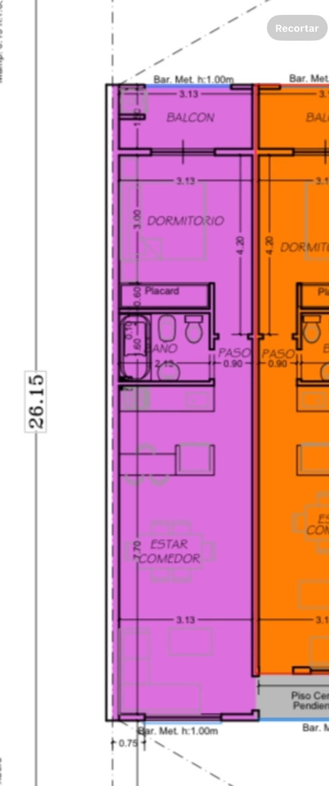 Dormitorio con salida a balcón.Baño completo.Superficie total: 40,34 m² cubiertos + 4,77 m² de balcón