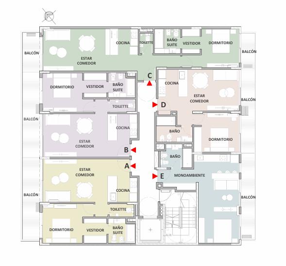Unidad funcional 1°C: Unidad de Dos ambientes al frente y contrafrente. Al ingresar nos encontramos con el living comedor, con cocina integrada y Toilette de recepción. Dormitorio en Suite con Vestidor. Salida al balcón corrido desde el living y dormitorio.