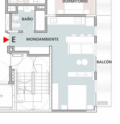 Unidad funcional 1°E: Unidad Monoambiente al contrafrente. Al ingresar nos encontramos con el living comedor con cocina integrada y salida al balcón. Un baño completo.