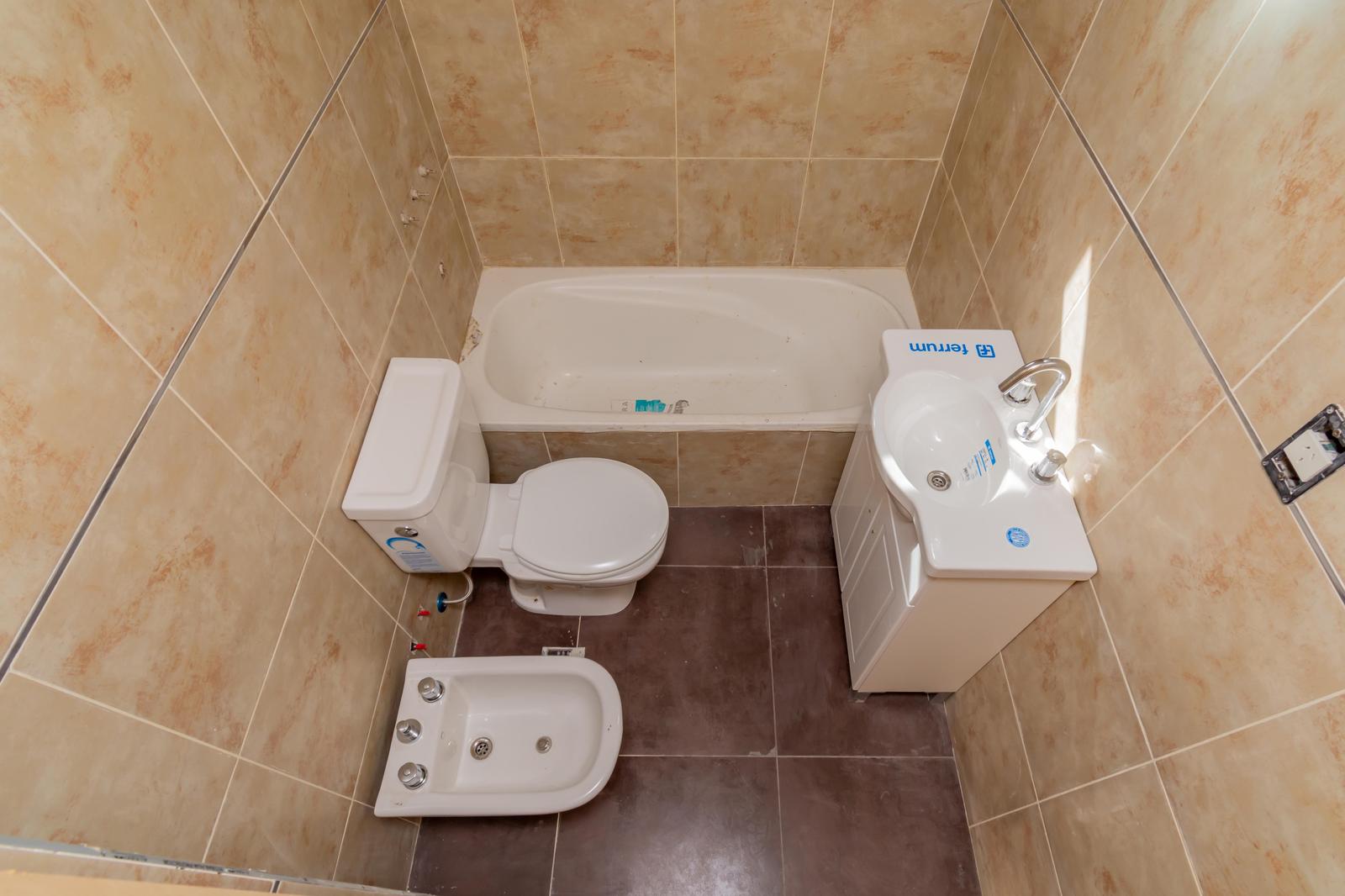 EQUIPAMIENTO EN BAñO: Juego completo de loza sanitaria . Marca Ferrum , Capea o similar a convenir – Griferia. Marca FV, linea Arizona, California o similar.
