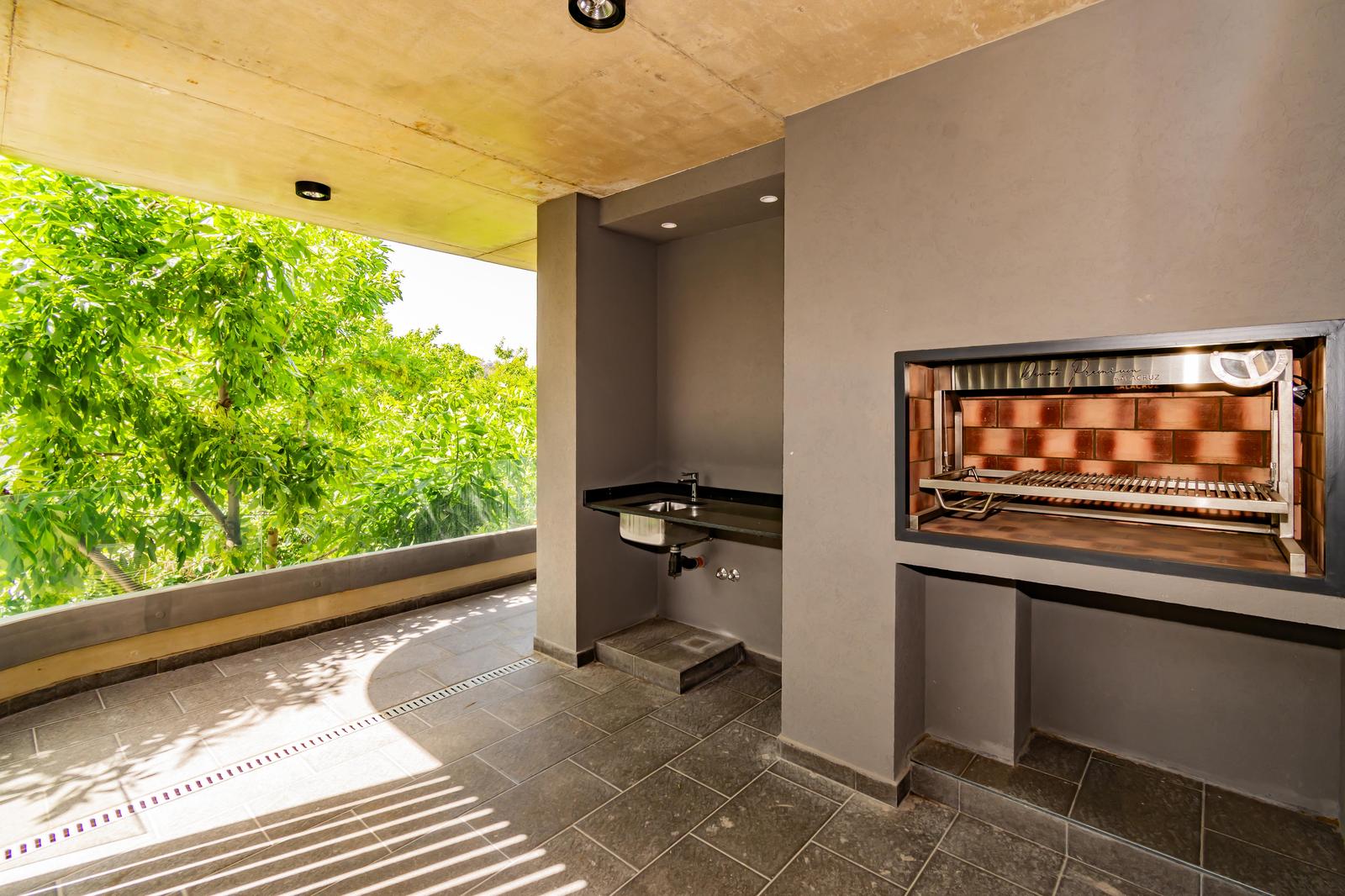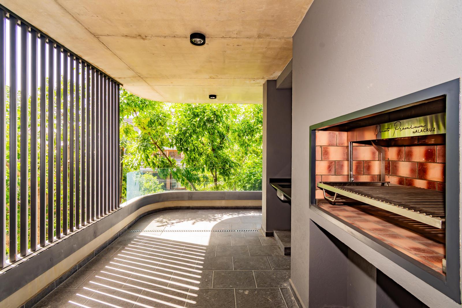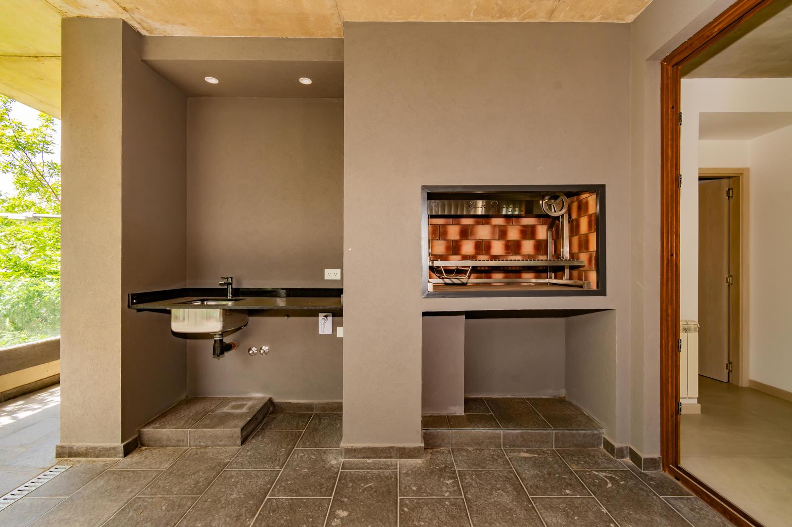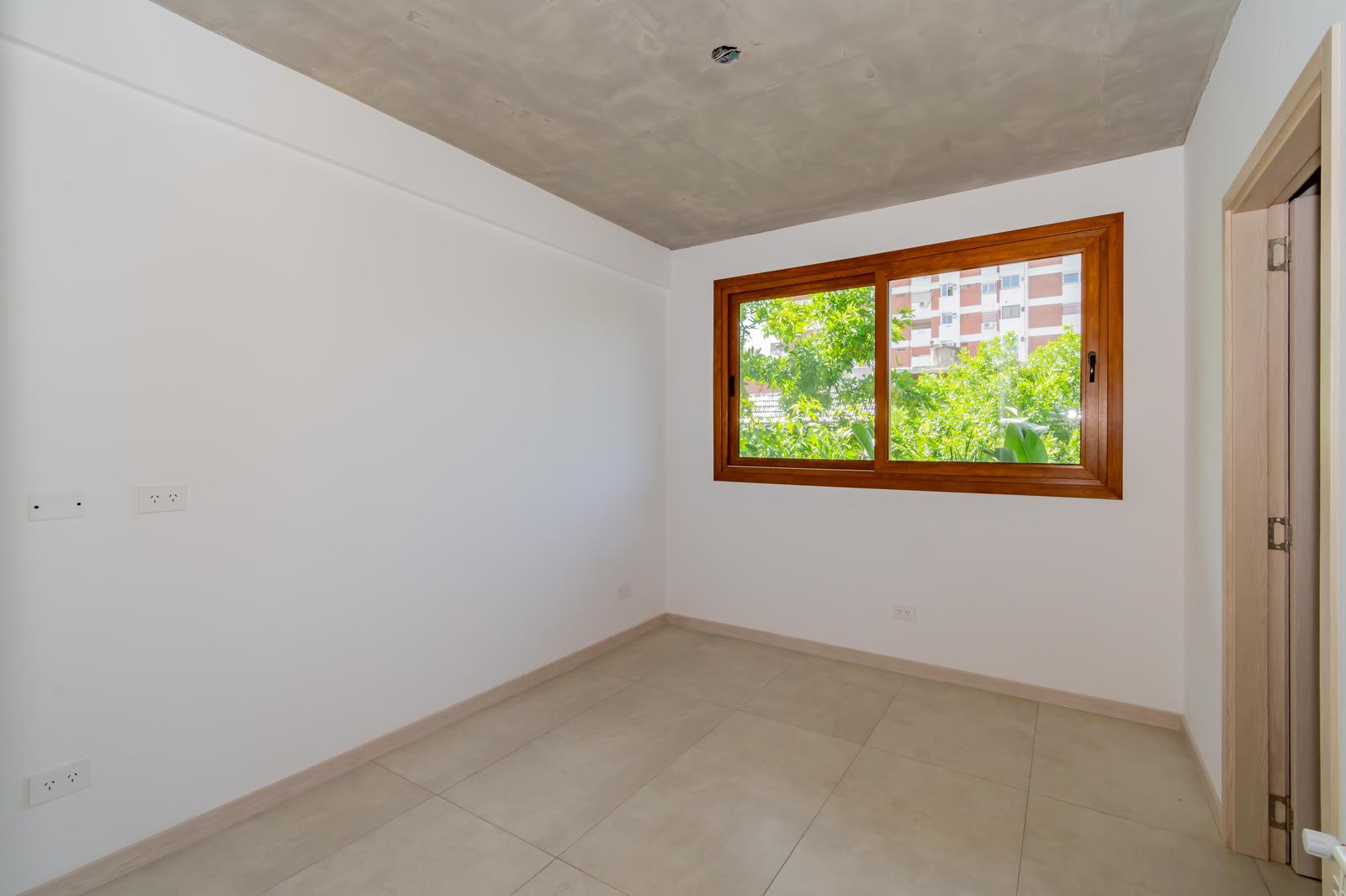 Esta unidad esta ubicada en el segundo piso, dispone de dos amplios dormitorios cada uno con un baño completo en suite, un toilette de recepción, una cómoda cocina integrada la cual posee Gas Natural y un gran living comedor con vista a un excelente balcón de 20 m2 sobre la calle Nueva York, que cuenta con Parrilla premium de Acero Inoxidable.