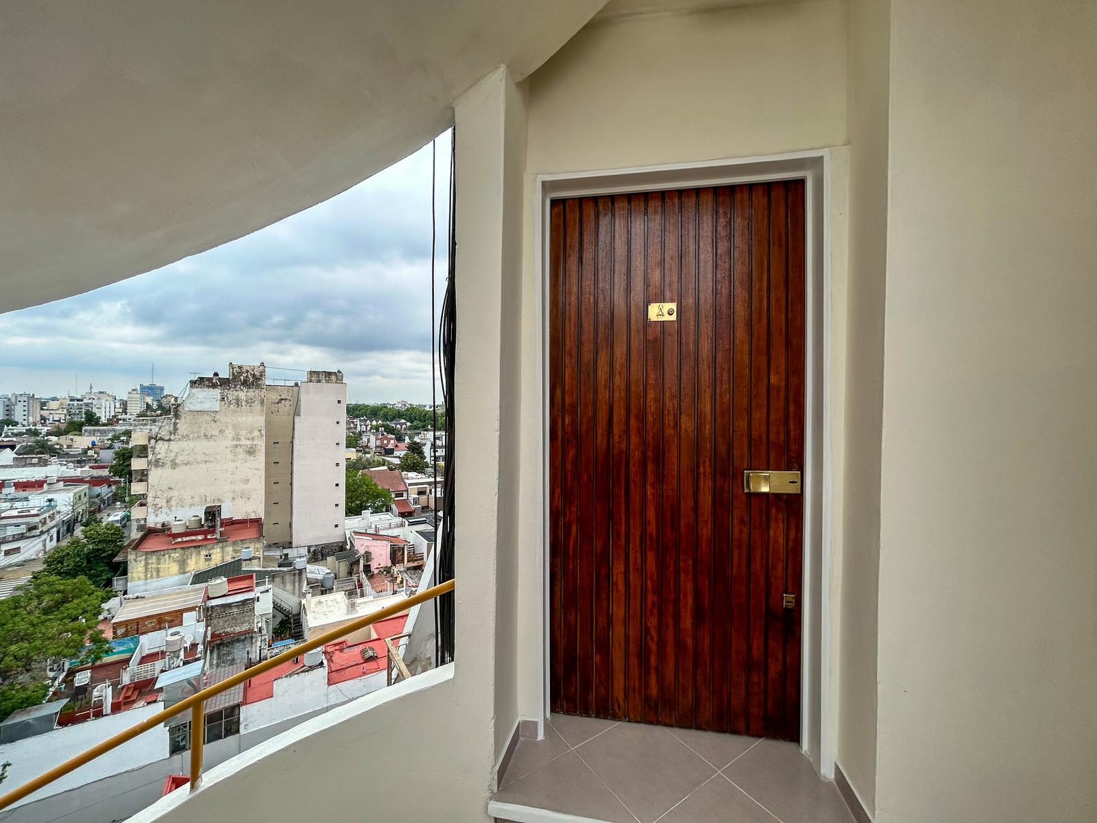 9° piso, al contrafrente. Se accedo por ascensor hasta el piso 8° piso y se accede por escalera.