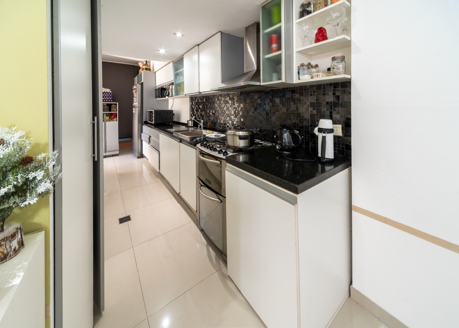 En planta baja se desarrolla un living comedor amplio y luminoso, con circulación fluida hacia una cocina funcional, con excelente espacio de guardado, circulación circular y salida directa al exterior. En esta planta también se encuentra un baño completo.