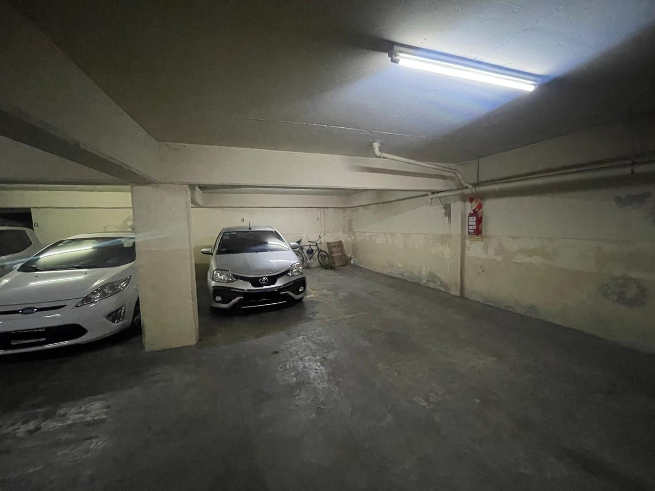 Edificio con piscina y dos cocheras fijas cubiertas.